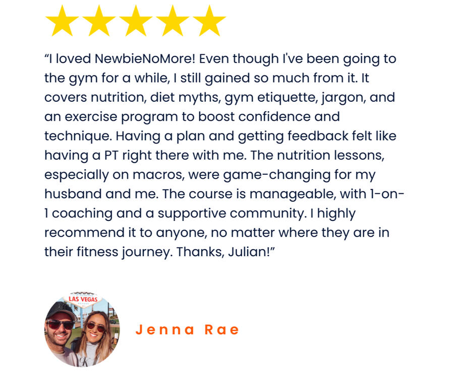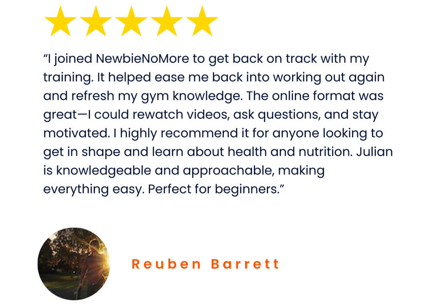 Newbie No More is a 14-day online mini master class designed to help you overcome the confusion, nerves, and uncertainty that many new gym-goers face.It’s all run inside a supportive Facebook group, so you’ll be learning alongside others who feel just like you — with guidance every step of the way. It’ll be like having me as your coach, completely free, for 14 days.In just two weeks, you’ll gain the confidence, skills, and knowledge you need to feel in control, comfortable, and motivated in the gym — no confusion, no overwhelm.